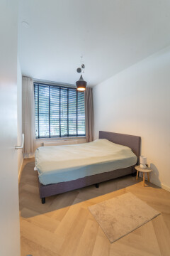 Modern appartement 45m2 met frans balkon. Ruime woonkamer met open keuken, slaapkamer met eigen douche en wasbakje, in de slaapkamer een apart hoekje met groot raam om eventueel een bureau neer te zetten, wasruimte met droger/wasmachine aansluiting en eigen toilet op de gang.